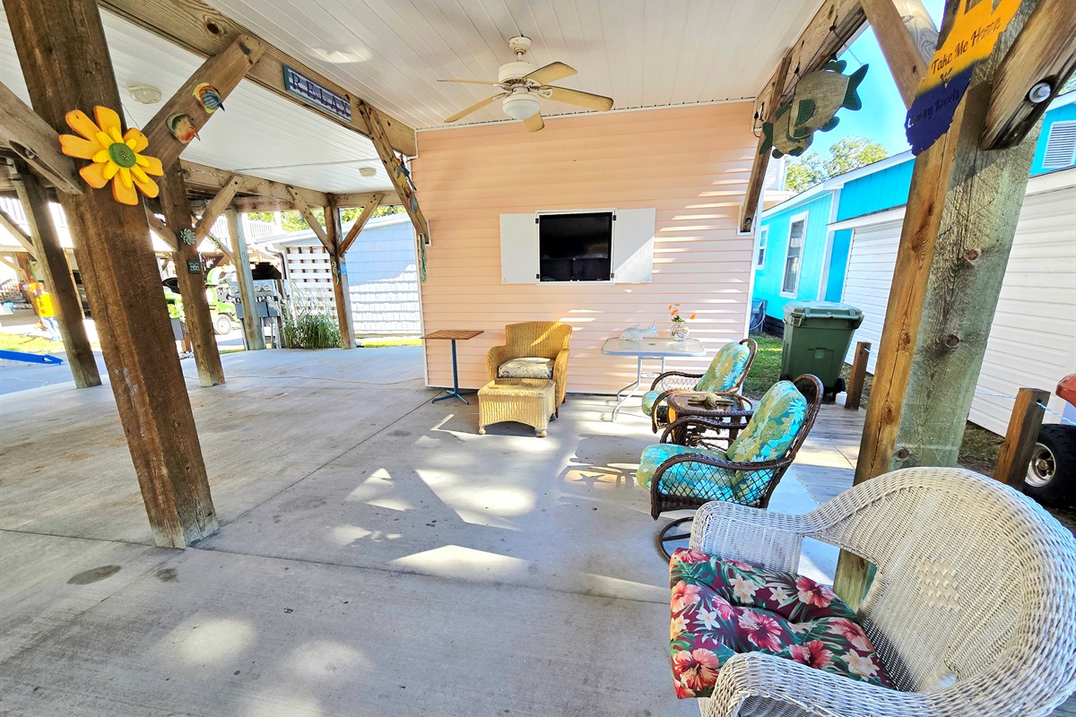 3 bedroom, 2 bathroom home on corner lot in Ocean Lakes Resort! This is a unique layout where 2 bedrooms are attached to bathrooms!! Outdoor space Galore for Entertaining, Relaxation & Parking. Outdoor TV, Propane Grill. Just a few minute golf cart ride to the beach.