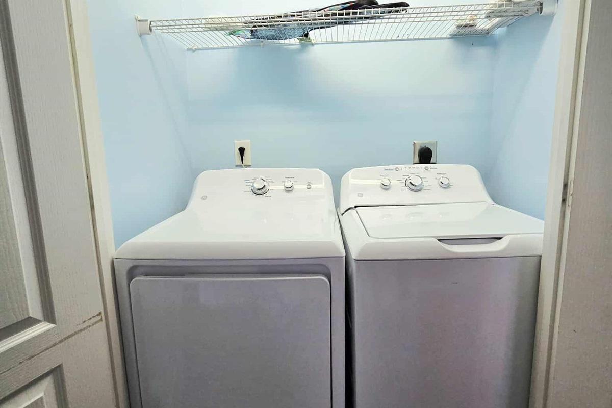 Plenty of seating on the balcony, Propane Grill, Beach Chairs available. This home has plenty of stocked items, includes a microwave and Dishwasher. In-Home washer & Dryer