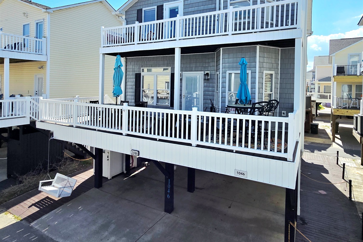 Enjoy the expansive outdoor deck with Ocean Views w/ plenty of seating, Propane Grill, Beach Chairs & More! There's even an TV in the outdoors. Front, main deck is North-facing, so you won't be blazing in the sun during the summer months.