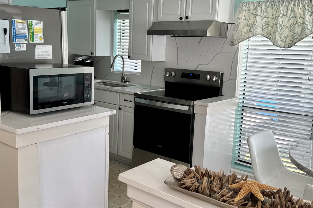 INSIDE: there is a smart TV w/ cable in every room and a stocked kitchen for preparing meals, washer & dryer, and a bathtub in the primary bathroom.