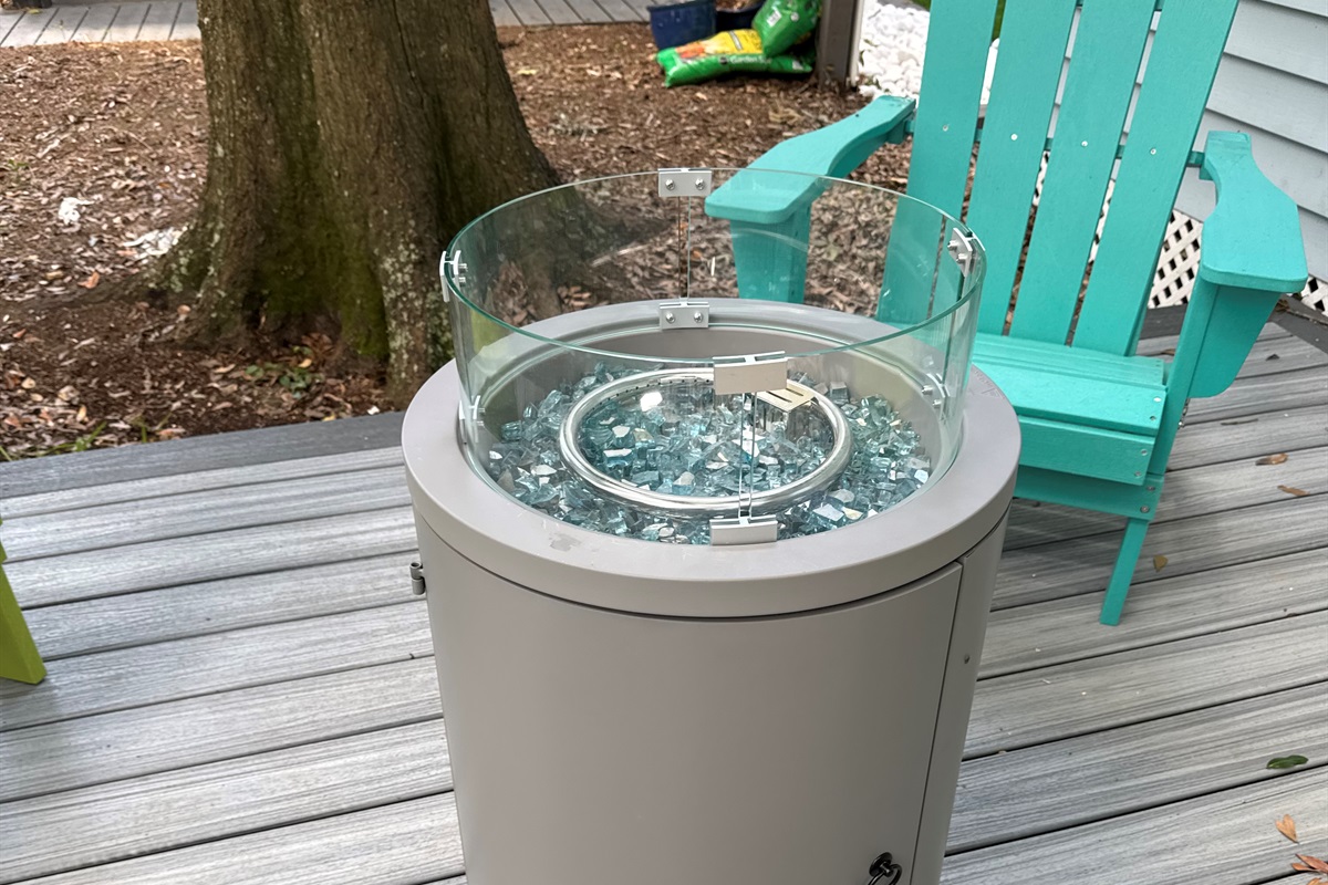 Propane grill for cookouts & Outdoor Shower w/ hot & cold for a rinse after the beach.